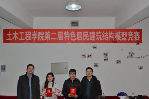 本次竞赛以“搭造特色民居结构为基础,充分发挥想象与创意”为主题。从10月初报名开始,38支参赛队经过两个多月的模型制作,最终24支队伍完成作品进入决赛。决赛中,评委们从风格特色、建筑形式、模型创新性和结构特点等方面进行评比打分。最终,土木15的义日贵、阿玛吉拉塔、布仁达完成的作品和工程16-2的崔乐乐、唐海娟,道桥16-2的田翔宇完成的作品获得一等奖。另外,评出二等奖4名、三等奖7名、优秀奖11名。