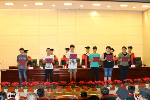 学位授予仪式上,郝东升宣读了矿业学院2017届毕业生名单及获得硕士、学士学位毕业生名单;院领导为2017届毕业生颁发了毕业证书;刘曙光为首届地下工程与地质技术专业获得硕士学位毕业生颁发学位证书,为采矿工程、地质工程专业获得学士学位毕业生颁发学位证书、拨穗正冠;王振友宣读获得2016/2017年度自治区“优秀大学毕业生”“三好学生”“优秀学生干部”以及2017届毕业生校级“优秀毕业生”、“三好学生”“优秀学生干部”名单,院领导为获奖学生颁发荣誉证书。