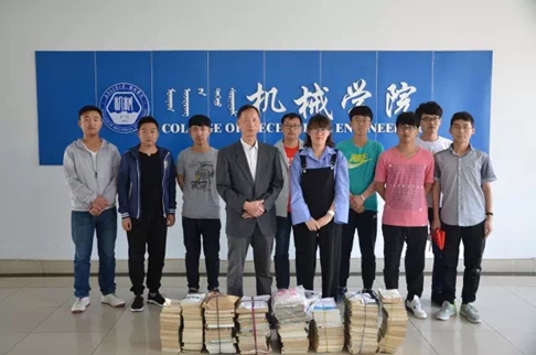 于永立老师在呼和浩特职业学院从事多年教学,曾执教机械制图、液压基础知识、工程图学等相关的专业,本次捐赠书籍不仅有专业书籍,还有于永立老师夫人从教多年的英语类书籍。捐赠书籍分机械教材类、机械制图习题类、机械手册类、建筑教材类、经济类、文学类、英语类等280余本。于永立老师希望,通过捐赠的书籍能够为机械学院的同学们丰富精神文化,提高专业技能。