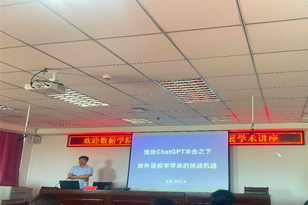 6月29日数据科学与应用学院院长王钢以浅谈ChatGPT冲击之下给外语教学带来的影响变化为题,为外国语学院师生作专题讲座。