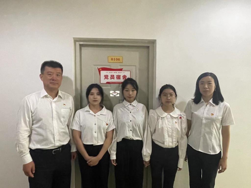 院领导和教师为学生党员授予“共产党员”床头标识,并与学生党员共同将“党员宿舍”标识牌张贴到宿舍醒目位置。