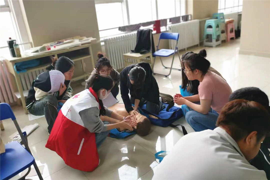 为进一步树立“人人学急救,急救为人人”理念,提升beat365学生应对突发公共卫生事件的能力,提高急救知识普及率,428,党委学生工作部、校团委校医院联合新城区红十字会在新城校区北区公寓创业孵化基地举办第三期红十字救护员培训班,各学院近150名学生参加培训。