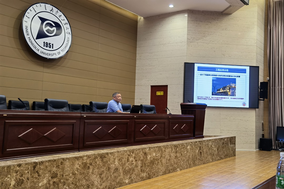 讲座中,沈胜强教授介绍了能源与动力装置中的传递过程、节能与新能源研究,并以主持的我国首台国产化多效蒸发海水淡化装置技术研发为例详细阐述了蒸汽喷射过程及喷射器研究、MED海水淡化技术原理。在场老师、同学认真聆听讲座,并与沈胜强教授就“海水淡化”等问题进行了交流。