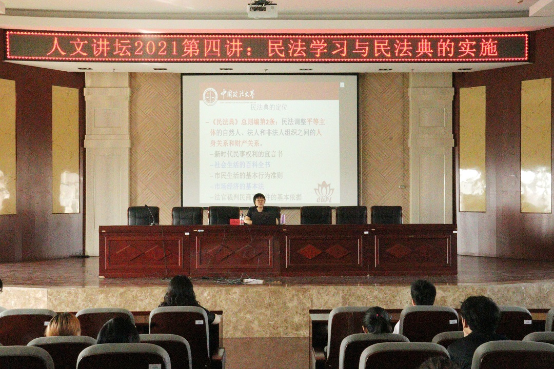 6月11日上午,人文学院在金川校区电力大楼楼报告厅举办人文讲坛2021年第四讲讲座由中国政法大学教授、法律硕士学院副院长、医疗保障法律与政策研究中心主任刘智慧教授主讲。人文学院副院长苏丽娜主持活动。法学教师、学生共180余人参加讲座。