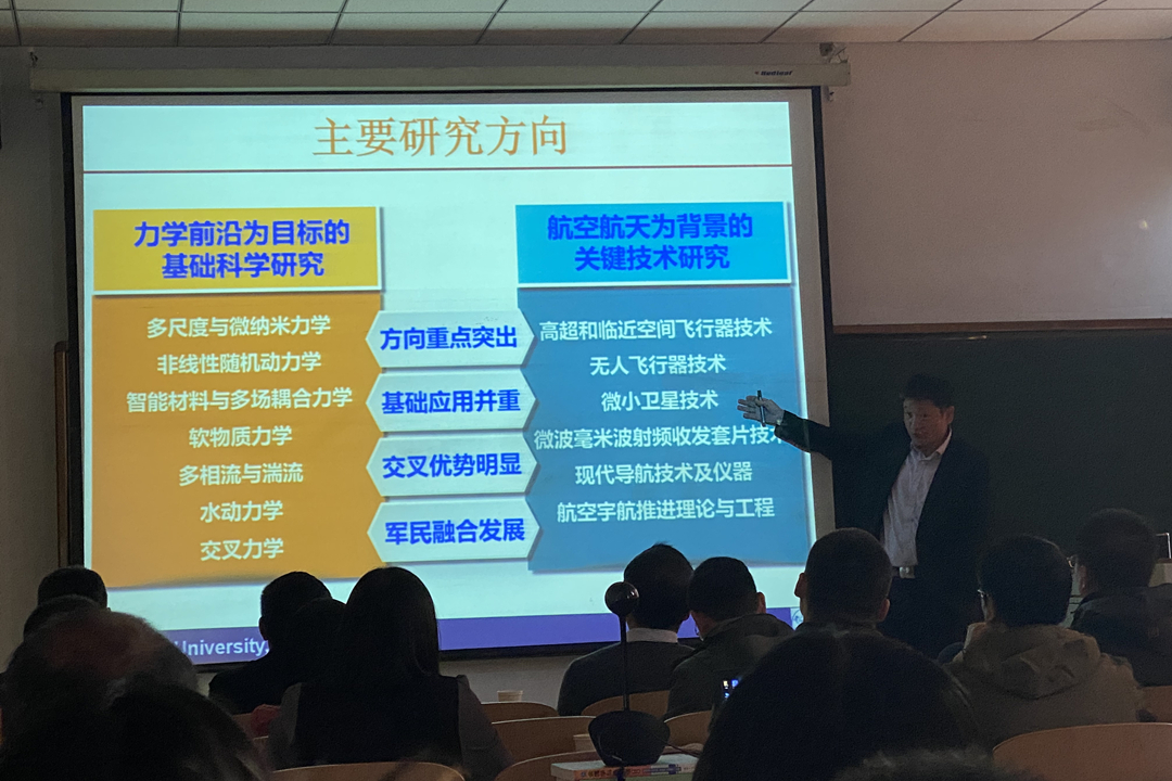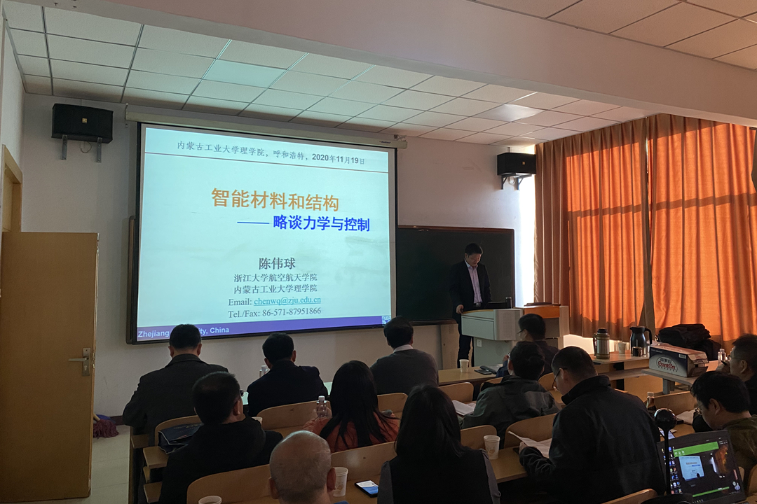 报告会上,陈伟球教授对浙江大学航空航天学院的发展历程进行了介绍,并概述了浙江大学航空航天学院目前的发展现状和主要研究方向。随后,详细介绍了智能材料的发展、研究现状以及课题组在智能材料和结构相关方向的新进展,并分享了自己在研究生培养过程中的心得。