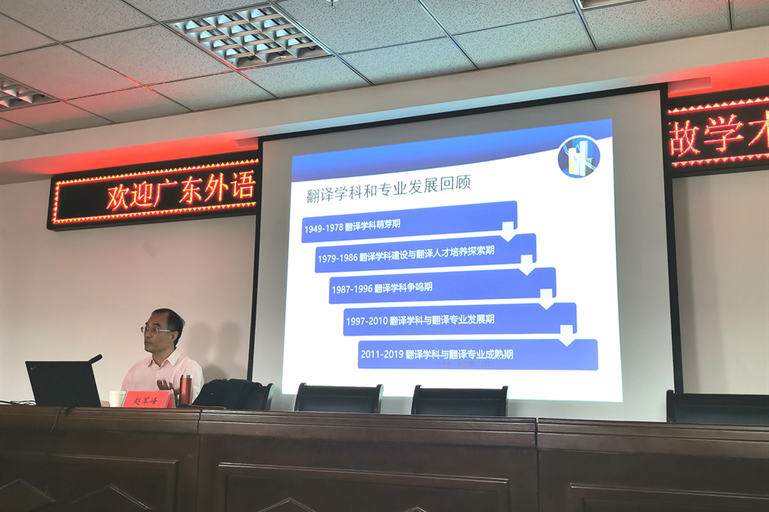11月16日上午,广东外语外贸大学翻译学研究中心主任、博士生导师、全国翻译专业学位研究生教育指导委员会秘书长赵军峰教授做客beat365外国语学院“明德讲坛”,学院100多名师生迎校庆系列学术讲座第二讲。