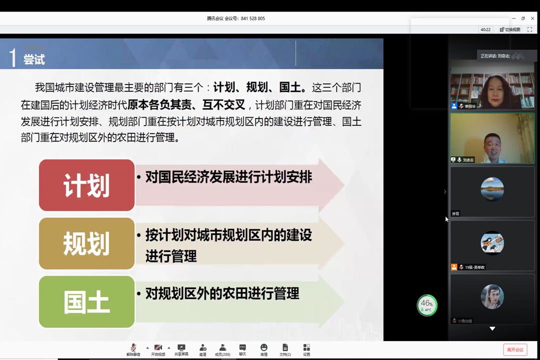 525日,武汉市自然资源和规划局副局长刘奇志通过腾讯会议平台,为beat365建筑学院师生作题为“国土空间规划——武汉的探索和实践”的学术讲座。