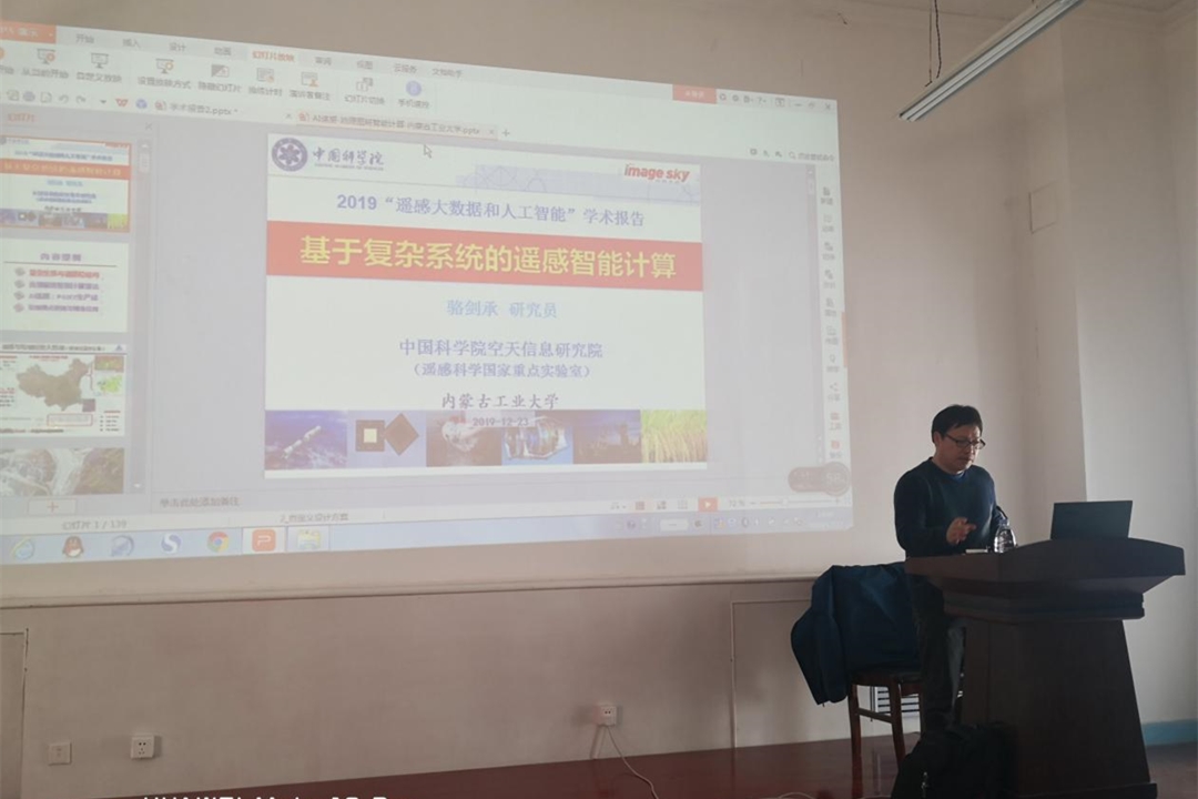 12月23日下午,自治区感知技术与智能系统重点实验室2019年学术报告会在金川校区电力大楼信息工程学院会议室举行。中国科学院空天信息研究院遥感科学国家重点实验室研究员、中国科学院大学博士生导师骆剑承教授作题为“基于复杂系统的遥感智能计算”的学术报告重点实验室主任房建东教授主持会议。