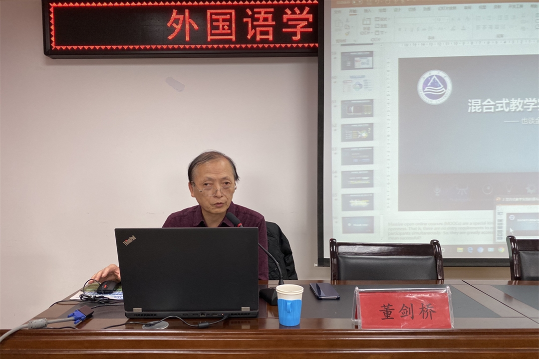 10月17日下午,外国语学院邀请江南大学教授、中国英语教学研究会计算机辅助外语教学专业委员会副主任董剑桥教授学院教师和研究生题为外语混合式教学的道与器的讲座。