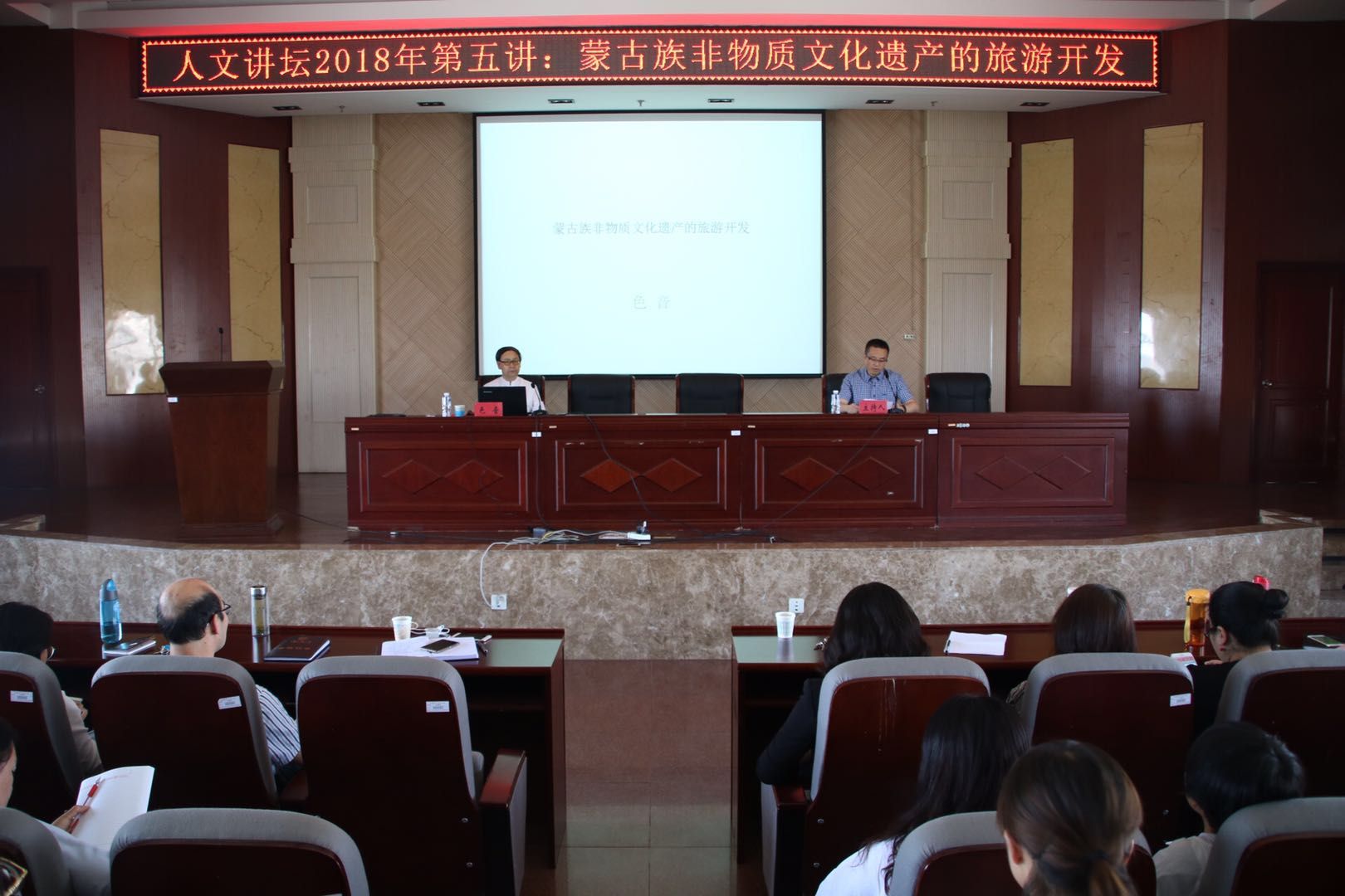 三位专家分别作题为试论生态民族观”“蒙古族非物质文化遗产的旅游开发近代内蒙古民族治理道路的历史探索”的学术报告。纳日碧力戈教授通过对“中华民族多元一体化”格局的阐释,解释了中华民族应该是多民族共同的精神家园,各民族关系应该为“民族共生、万象共生”的经济、语言、信仰、基因互联的纺绳互联体色音教授从国际文化遗产的起源入手,结合自己的学术认识,讲解非物质文化遗产的旅游开发现状、问题和解决对策;杨强副教授通过史学资料,分析了内蒙古自治区成立之前的蒙古地方与中央政府对内蒙古民族自治道路的探索历程,指出民族区域自治制度是解决多民族国家民族治理的有效途径