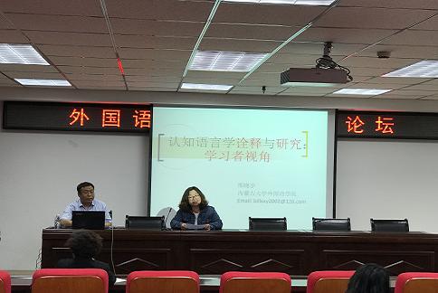 吴白音那以《内蒙古地区初中英语教师课堂英、汉、蒙语码转换研究》为题,以内蒙古地区蒙古族英语教师为例,从维果茨基的社会文化理伦,对初中英语教师课堂蒙、汉、英三语语码转换分布特点、中介作用、教师采用不同结构类型语码转换的原因进行了详细的分析研究。邢晓宇以《认知语言学诠释与研究:学习者视角》为题,从兴起背景、概念、角色定位、表征方式、话题几个方面对认知语言学进行了诠释,对相关研究进行了介绍,并应用认知语言学的入景理论对汉语语法的相关问题进行了具体分析,阐述了该理论的跨语言普适性。郭景华就如何追踪学术热点,根据学术热点提出、选择课题进行了介绍,并提供了诸多文献检索手段和方法,同时引导师生积极培养自身的科研能力。苏芳分享了自己多年来的科研和学习之路,为广大师生进一步提高学历层次提供了借鉴。