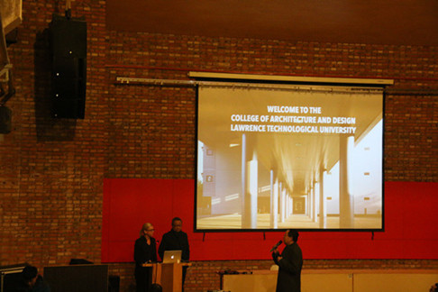 1218日晚,建筑学院举办《跨界创意:从理论到实践的新设计模式》学术报告会。报告会由美国劳伦斯理工大学建筑与设计学院院长、底特律创意设计中心总裁Amy Deines教授和美国劳伦斯理工大学建筑与设计学院教授、美国建筑师事务所董事、设计总监Paul Wang主讲。建筑学院师生200余人参加,院长贾晓浒主持报告会。