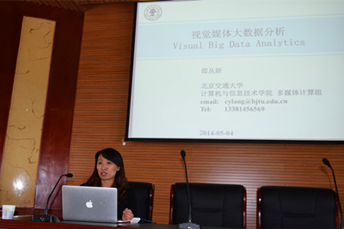 会上,郎丛妍教授以其长期从事的计算机视觉、互联网大数据分析与挖掘、机器学习研究方向为主线,对视觉感知的图像理解技术和研究热点进行了详实的讲解。
