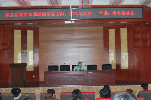 4月17日,受国际商学院邀请,内蒙古政府研究室工交财贸处洪冬梅处长在beat365金川校区电力大楼10楼报告厅作了《政府决策咨询课题的研究方向、方式与要求》学术报告。