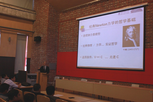 吴克启教授报告会上,介绍了气动声学(场)/量子力学、Hamilton力学及其在动力工程中的应用和对称性与群理论及其应用;详细讲解了经典力学的三种不同的数学形式:Newton方程、Lagrange方程和Hamilton方程及量子力学与经典力学的区别和内在联系。吴克启教授一边讲解一边播放视频,把复杂的量子力学与工程实际结合起来,讲授妙趣横生,学生兴趣盎然。他还现场解答了同学们的提问,使现场的师生受益匪浅。