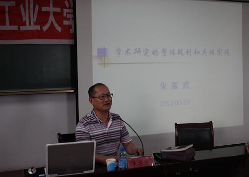 朱振武教授分别就学术研究的起步、确立正确的研究方向和意识以及学术论文的规范、论文写作的微观方法等方面作了详细讲解。他指出,学术研究首先要在起步时就进入正轨,了解自己的专业范围,了解国内相关专业的历史和现状,以及相关报纸期刊等;研究方向要有可持续性,也要符合学校和个人的实际情况和将来的发展需要;学术研究的过程中要有角色意识、特色意识、精品意识及与知名学者接触交流的意识;在论文写作时要注意抓新意,抓冷门、抓创新;要严格遵守学术论文的规范,也要采用适用的写作方法。他以自身为例,鼓励大家在学术研究中要达到一定的境界,保持严谨的态度,拓宽知识领域,积极思维,反复推敲。他还就项目申请通常会遇到的问题及相应的解决措施与与会者进行了深入交流和探讨。
