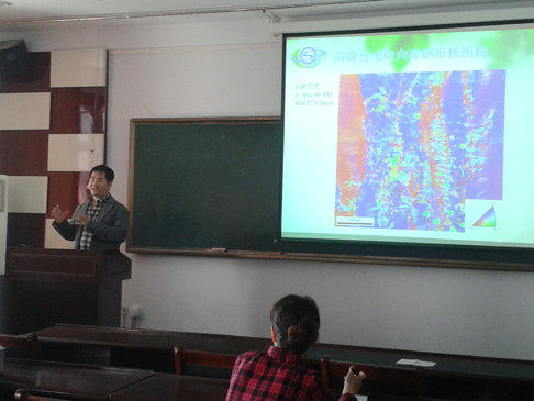 马良博士主要从事高牌号无取向硅钢及双辊薄带连铸等方面的研究工作。会上,他就双辊薄带连铸无取向硅钢及无取向硅钢再结晶织构等内容进行了讲解,并与广大师生进行了热烈的讨论。