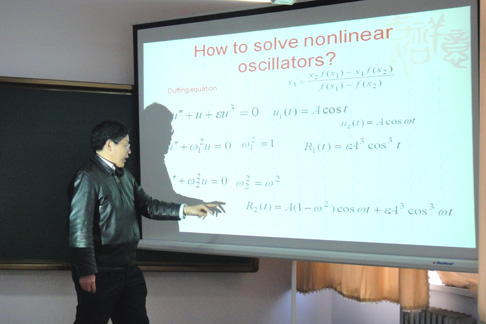 12月10日上午,国际著名学者何吉欢教授应邀为理学院师生作了题为《非线性方程的一些近似求解方法》的学术报告。理学院数学系、工科数学部、力学系的30多名教师以及60多名研究生听取了报告。报告由副院长闫在在教授主持。