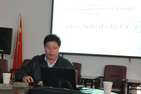 报告中,何吉欢教授从中国古代数学、同伦摄动方法及其应用、参数扩展方法、半逆法、变分迭代法以及EXP-函数法等方面讲述了非线性方程的一些近似求解方法。其中,重点讲述了他所提出的有效数学方法——变分迭代法,该方法已被国内外学者成功地应用于求解各类非线性问题。为了活跃现场气氛,他还讲述了易经与数学的联系。