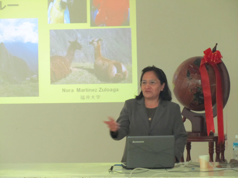 Martinez Zuloaga Nora Teresa博士是南美秘鲁人,日本福井大学博士后、研究员。报告前他介绍了秘鲁的社会,人文等情况。