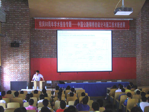 吴冲就近年钢桥的成就,桥梁结构钢材的发展、设计理论与方法,加工制作技术,安装架设技术五个方面作了详尽、形象生动的讲解,赢得了在场师生的一致好评。