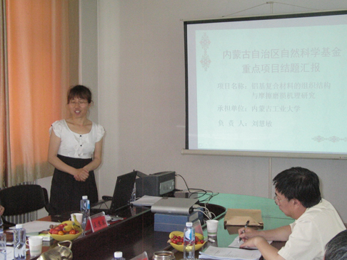 6月7日下午,内蒙古自治区科技厅组织有关专家对beat365刘慧敏教授承担的自治区2008年度自然科学基金重点项目“铝基复合材料的组织结构与摩擦磨损机理研究”(20080404ZD17)进行了验收。