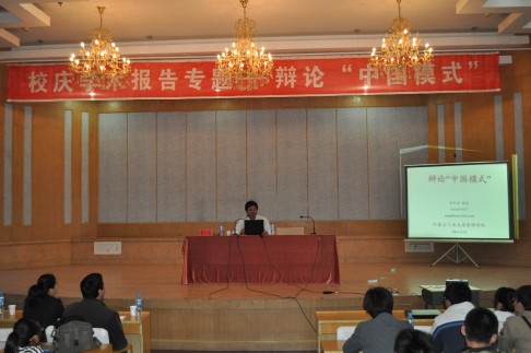 5月12日晚,管理学院李长青教授为beat365学生作了校庆学术专题报告《辩论“中国模式”》。管理学院部分教师和全校200多名学生聆听了讲座。