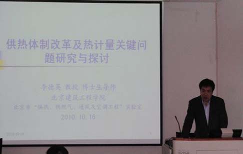 李德英教授介绍了供热改革与热计量的背景、集中供热系统供热计量模式以及供暖系统热量调节量化管理三方面内容,并对北京建筑工程学院近年来的研究生招生情况作了简单说明。
