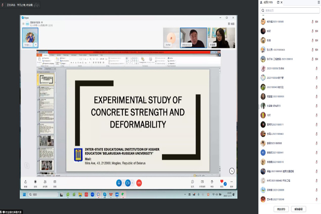 为进一步提高国际交流水平,激发师生的科学探索精神,落实“向北开放重要桥头堡”的重要指示,12月5日下午,土木工程学院邀请白俄罗斯-俄罗斯大学莫斯科娃·朱莉娅教授作题为“Experimental study of concrete strength and deformability”的学术报告。报告会由时金娜副院长主持土木工程学院百余名师生线上聆听。