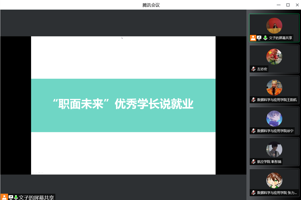 三位校友分别就个人及身边校友的工作与成长经历、简历设计与求职面试的注意事项与建议、如何做好就业准备走好职场第一步等内容进行分享,生动鲜活地呈现了他们从基层岗位一路成长的所见所闻所感,勉励同学们结合自身实际情况认真考虑就业选择,合理调整求职预期,珍惜就业机会,争取早日成功就业、满意就业。