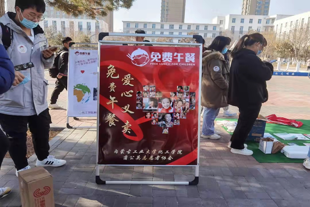 为帮助偏远地区的贫困儿童,提高青年大学生对公益事业的关注度,弘扬“乐于助人”的中华民族传统美德,进一步培养学生志愿服务精神11月9日至29日,化工学院“蒲公英志愿者协会”大学生驿站举办“小善大爱——免费午餐劝募活动。