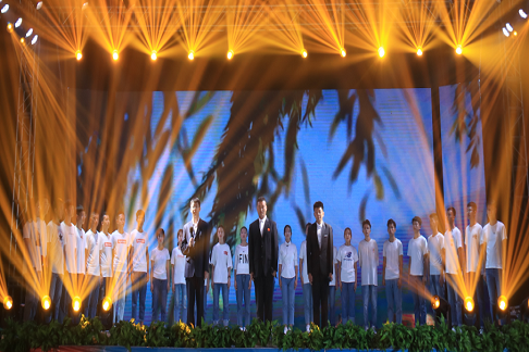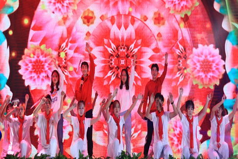 迎新晚会在全体演员深情地集体合唱《可爱的中国》中圆满落下帷幕。