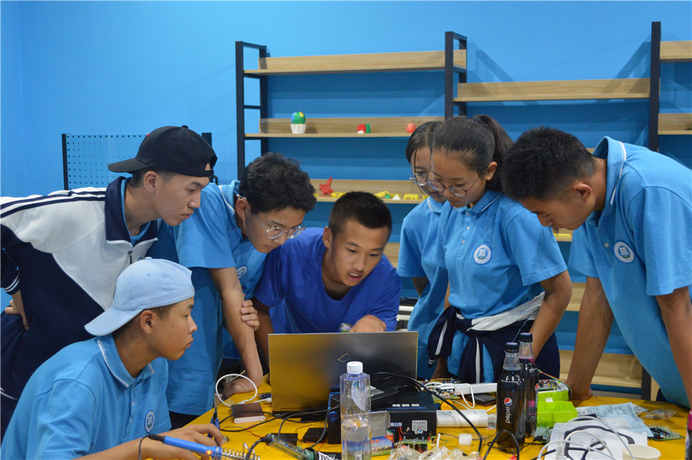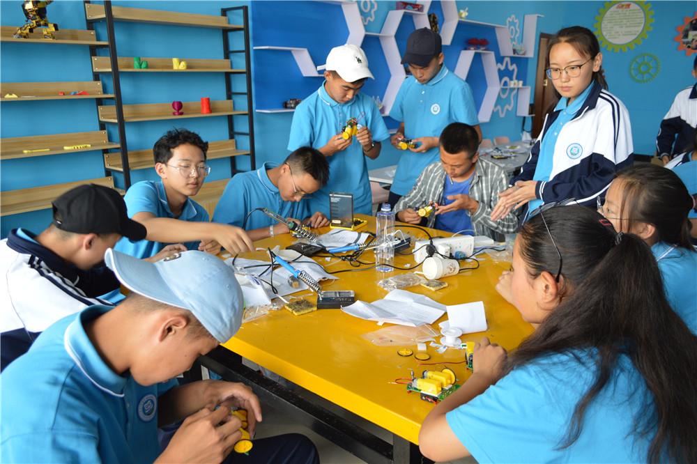 活动中两校学生一起制作手工艺品进一步加深了同学们科技创新的了解与认识。经过两天的学习交流,蒙中同学制作出近30件3D打印成品,15件心型流水灯,15件声控流水灯,10辆智能循迹小车,5辆乐高组装式机器车。