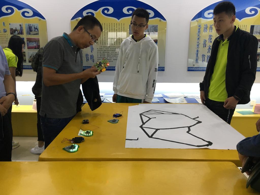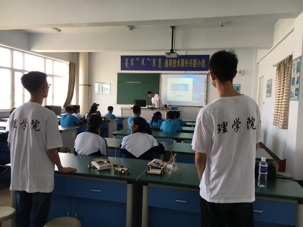 理学院的同学们带着66名蒙中的高中生制作了桐木承重结构、逆风行走装置、自动循迹小车和七彩LED灯。