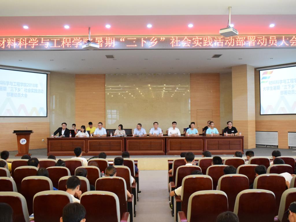 7月3日晚,材料科学与工程学院新城校区第三教学楼报告厅召开2018年暑期“三下乡”社会实践活动动员部署大会学院党委书记车广东团学办公室主任代维东、副主任马晓凤团委学生会十届三次委员会全体委员,2017级全体学生20162015级各班班长团支书社会实践各小分队队长和通讯员学院本科和硕士研究生重点队全部成员近500人参加会议。