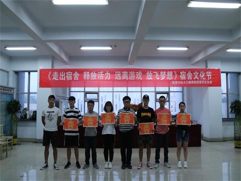 宿舍文化节6月7日开幕至6月23日闭幕历时17天,先后举办五子棋、象棋、贪吃蛇、猜猜看、六人七足等室内、室外赛事以及“最美宿舍评比”。本次宿舍文化节的主题是号召大学生走出宿舍,释放活力,远离游戏,放飞梦想”。经过各项赛事的激烈角逐,最终共六个宿舍分获男女生宿舍前三名,共六个宿舍获得“最美宿舍”荣誉称号。
