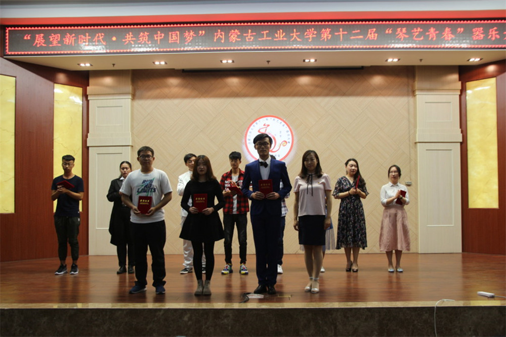 经过初赛选拔,全校共11组选手入围决赛整场比赛精彩纷呈,涵盖了钢琴、小提琴、琵琶、萨克斯、竹笛、长笛等多种乐器表演。青春的勃发在弦音律动下使人久久沉醉不愿梦醒;燃烧的激情在悠扬的旋律中徘徊静静徜徉。最终,王宇轩同学的竹笛表演《红高粱叙事曲》获得一等奖邱晗同学的萨克斯表演《为了你》伊洋同学的钢琴表演《眼泪》获得二等奖李浩博同学的吉他表演《sunflower》、刘曦冉同学的小提琴表演《一个人的浪漫》、卢嘉颖同学的吉他表演《南山南》获得三等奖。