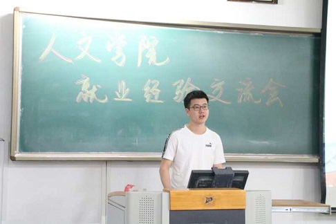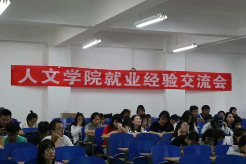 5月24日,人文学院2018届毕业生就业经验交流会在金川校区教学楼A107举行。杨成仁、李闯、孙凡乔、于宝龙、郑燊生五位优秀毕业生与同学分享自己的求职经历、心得体会宝贵经验。学院2016级2017级学生参加活动。