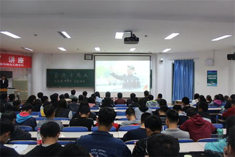 讲座开始,全体同学共唱团歌。主讲人播放了“领航”纪录片,呈现了中国共产党从一大到十九大不断成长的红色足迹。主讲人以中国共产党发展史为主线,按照时间顺序,引用大量详实的事例,深入解读了中国共产党的发展历程,并对各个历史时期的事件、经验教训等进行了系统、深入的解析。