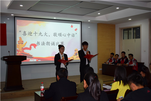 1017日,材料学院党委在工程技术楼举办喜迎十九大,敬颂心中话书法朗诵比赛。学院团委书记马晓凤、辅导员菅妮和各支部书记担任评委,部分党员和积极分子观看比赛。