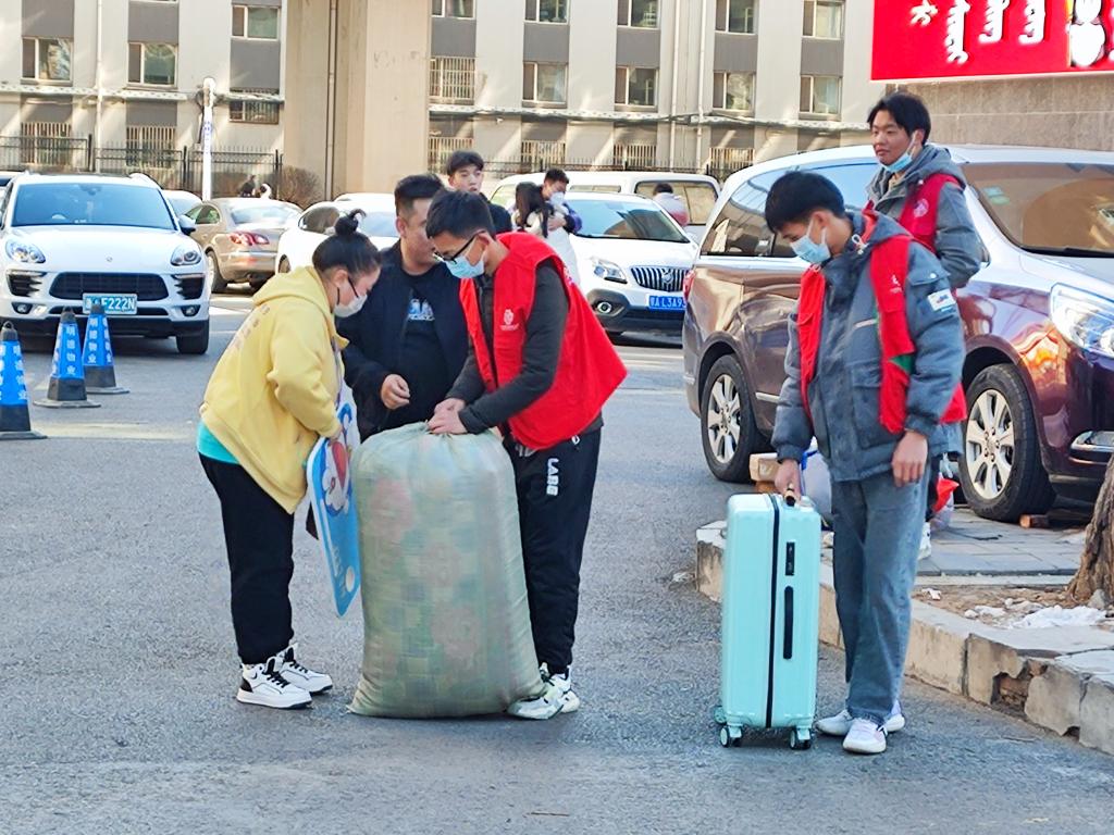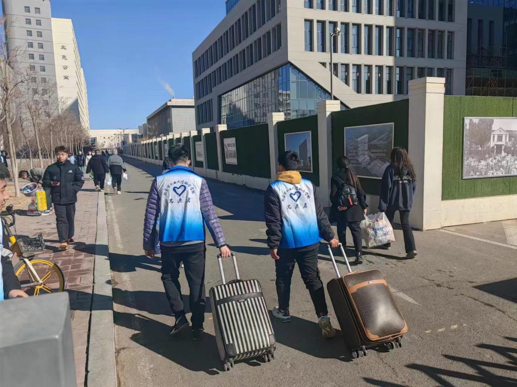 一句句“欢迎回校”,一声声“我帮你拿”,一辆辆“爱心行李接驳车”,处处可见青年志愿者的身影。他们不顾天气寒冷,或为同学搬运行李或引导同学有序进校,他们是最可爱的搬运工也是校园里最亮丽的风景线,他们用满腔热血和温暖笑颜迎接从全国各地返校的同学,用实际行动为学生返校暖心护航。志愿者的亲切引导热情服务,让同学们感受到了学校的温暖。