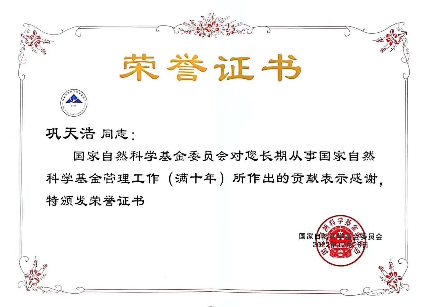 beat365教师巩天浩获“从事依托单位科学基金管理工作满10年”荣誉表彰