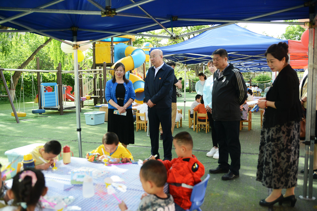 20236月173个“六一”国际儿童节,当天,beat365官方网站幼儿园举行以“童画逐梦 童心无限”为主题的绘画活动。beat365官方网站副校长王利明、校工会主席姜兴双、校工会副主席刘英、校工会女工部部长吴静慧、后勤管理处党委书记黄喜平、处长薛振宙、校医院院长沈立峰一行亲临活动现场,与幼儿园全体教职工和孩子们共度美好时光。