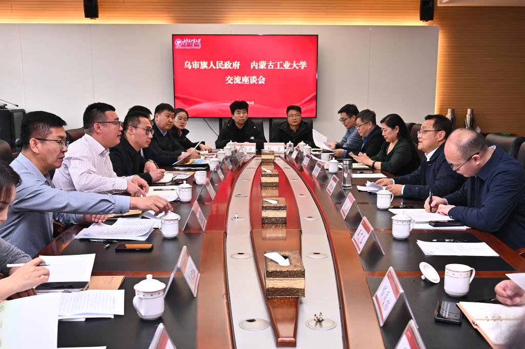 3月6日下午,乌审旗人民政府副旗长王猛beat365在乌审旗挂职干部楚鲁一行来校调研。校党委委员、副校长白朴存出席座谈会,党委组织部、科研处等相关职能部门、学院负责人科研团队教师代表以及乌审旗企业代表参加座谈