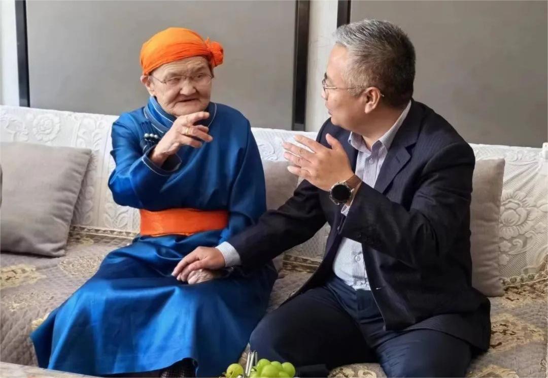 会后,郭洪飞代表智慧物流技术与高端智能装备院士专家工作站师生拜访了荣获“人民楷模”国家荣誉称号的都贵玛,关切询问老人的身体和生活状况,并一起追忆“草原额吉”的动人故事。