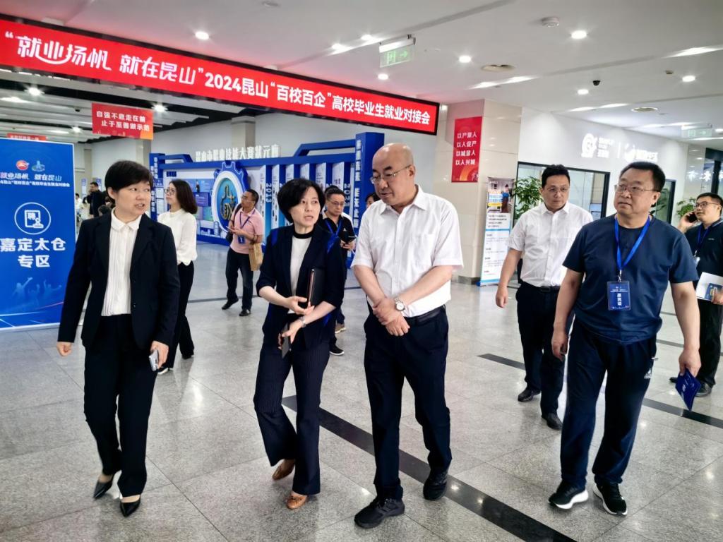 王利明一行赴昆山市参加了beat365就业工作站昆山人力资源市场举办的“就业扬帆·就在昆山”2024昆山“百校百企”高校毕业生就业对接会,企业相关负责人与百余家高校就业负责人面对面交流,进一步深化校地企合作,为毕业生搭建更大成长平台,现场131家企业参展并提供2500个高质量就业岗位。随后,实地走访了昆山三川面料科技有限公司、昆山厚声电子工业有限公司、苏州华天幕墙装饰工程有限公司等企业,并与校友进行交流。