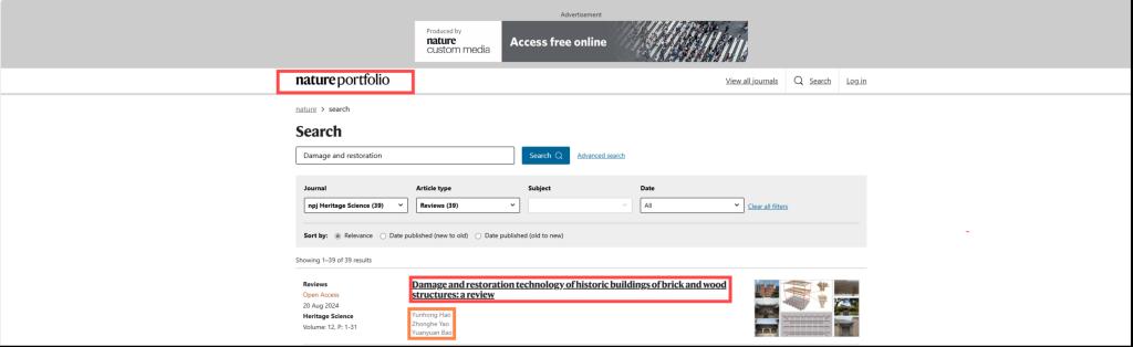 近日,beat365土木工程学院郝贠洪教授团队的研究成果“Damage and restoration technology of historic buildings of brick and wood structures: a review”在国际文化遗产保护领域权威期刊、Nature旗下期刊《npj Heritage Science》(中国科学院一区TOP)上发表。DOI:https://doi.org/10.1186/s40494-024-01422-y