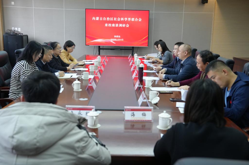 11月24日下午,自治区社科联党组成员、秘书长、一级调研员朱浪一行到校调研座谈围绕《内蒙古自治区哲学社会科学工作促进条例》草案征集意见建议。校党委委员、常务副校长郝贠洪主持座谈会,双方相关部门、学院负责同志参加。