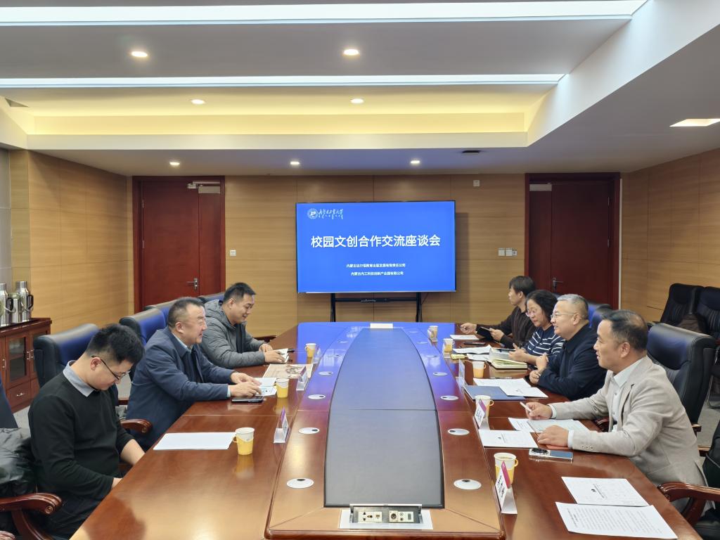 11月26日,内蒙古达尔恒教育出版发展有限责任公司执行董事、总经理巴雅日图一行到校,就校园文创领域合作事宜交流座谈。校党委委员、副校长郭洪飞出席,内蒙古内工科技创新产业园有限公司董事长佐同林主持会议。