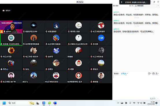 本次培训邀请河北农业大学创新创业教育指导中心副主任、副研究员张佳景作专题辅导讲座。张佳景以“专创融合课程建设与教育教学改革”为题,从专创融合驱动教学改革、课程与教学改革实践、专创融合建设成效等3个方面,重点围绕河北农业大学创新创业教育开展情况,从”下沉、陪伴、裂变“分层次递进的角度,介绍了如何布局专业课改革、开设专创融合课程试点、专创元素挖掘和提炼、专创融合原则和方法、底层逻辑、课程建设推广、技能专训和微专业、卓越班建设等情况。